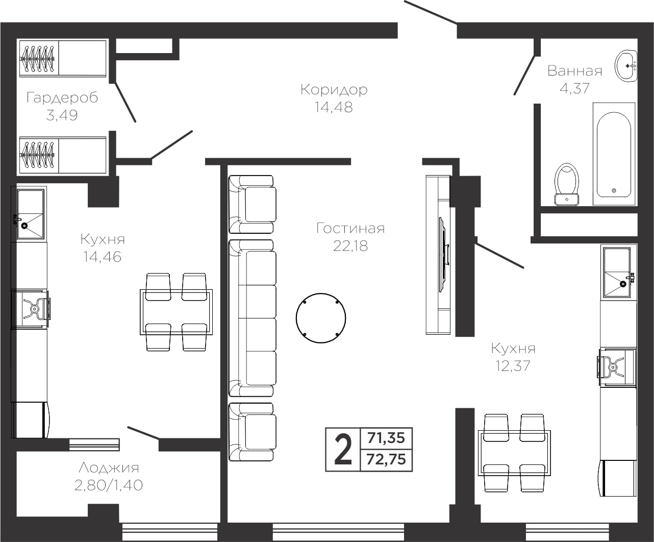 72.2 м²